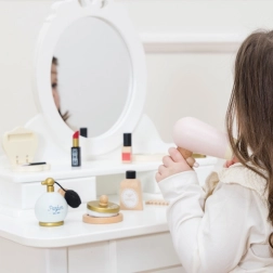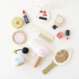 Dieses wunderschöne Set aus der Honeybake-Kollektion von LE TOY VAN bietet Kindern ein authentisches Erlebnis beim Schminken und Frisieren. Die Stofftasche aus natürlicher Baumwolle beherbergt hölzerne Accessoires mit abgerundeten Kanten, lackiert mit ungiftigen Farben auf Wasserbasis. Ideal für kleine Visagistinnen und Visagisten, die sicher und mit Fantasie kreativ sein möchten.