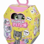 Das Kätzchen PAMPER PETZ ist das ideale Haustier für Kinder, die Spaß an Adoption und Pflege eines kleinen Spielsachen haben. Das Spielzeug bietet die Möglichkeit, echtes Wasser aus einer Flasche zu trinken und dann in die Windel zu pinkeln, die ihre Farbe ändert, wenn sie nass ist. Die magische Pfote zeigt an, ob das Kätzchen ein Junge oder ein Mädchen ist.