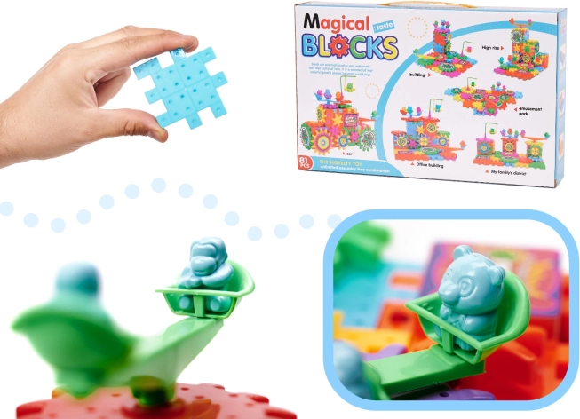 Mit den Magical Blocks wird der Spaß kein Ende nehmen. Sie können sicher sein, dass Ihr Kind mit diesem Set nicht gelangweilt wird. Die Zahnräder-förmigen Blöcke bieten ein großartiges Unterhaltungsdesign zur Unterstützung der gesunden Entwicklung Ihres Kindes. Beim Bauen fördert der kleine Konstrukteur Kreativität, erwirbt Fähigkeiten zum logischen und kreativen Denken und entwickelt manuelle Fertigkeiten. Eine Vielzahl von Elementen und Farben bietet unbegrenzte Bauoptionen.