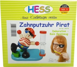 Motivieren Sie Kinder spielerisch zu regelmäßigem Zähneputzen. Der hölzerne Pirat mit Sanduhr und blauem Sand misst zuverlässig die empfohlenen 2 Minuten, während der integrierte Zahnbürstenhalter für Ordnung im Bad sorgt.