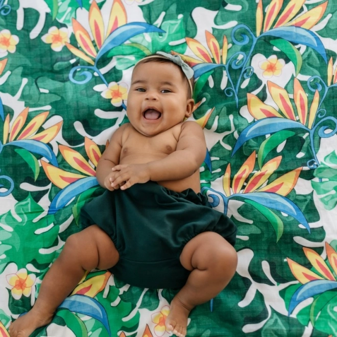 Das leichte und luftige Bambus-Baumwoll-Musselintuch von Tommy Lise im Muster Lush Garden ist sanft zur Babyhaut, atmungsaktiv, kühlend und angenehm im Griff. Dank des großen Formats 120 × 120 cm lässt es sich als Decke, Pucktuch und Stillabdeckung verwenden.