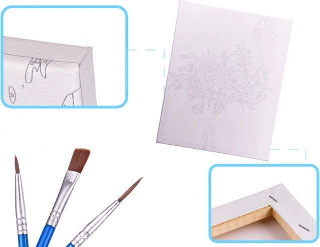 - Komplettes Set: Enthalten sind eine Leinwand mit aufgedrucktem Bild auf einem Holzrahmen, ein vollständiger Satz Farben, die genau ausreichen, um das gesamte Bild zu bemalen, sowie drei unterschiedlich breite Pinsel.