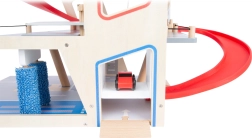 Die Waschanlage mit drehbaren Bürsten sorgt für Realismus, während gummierte Schutzkanten auf den Etagen das Herunterfallen der Autos verhindern und die Sicherheit beim Fahren erhöhen.