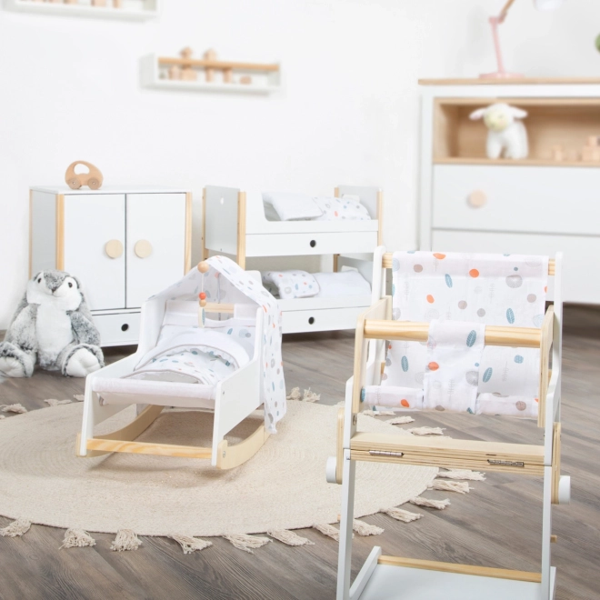 Die Schubladen unter den Betten halten Zubehör ordentlich, während die genderneutrale Bettwäsche und die oversized Decken Puppen bis 46 cm perfekt passen.