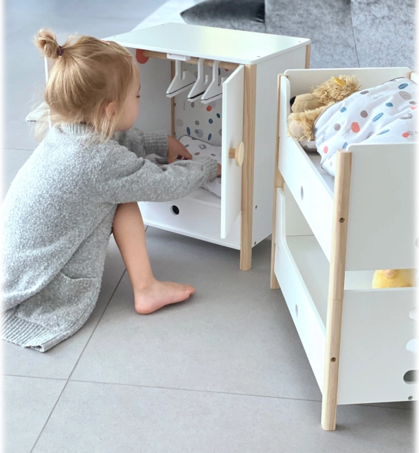 Dieses hochwertige Holzpuppenbett im modernen nordischen Stil bietet Kindern stundenlangen kreativen Spielspaß. Dank der durchdachten Konstruktion lässt es sich leicht als zwei Einzelbetten oder als Etagenbett aufbauen; beim Stapeln entsteht an einer Seite eine Leiter. Sichtbares Holz, glatte Flächen und abgerundete Kanten sorgen für eine ansprechende Optik und sicheres Spielen.