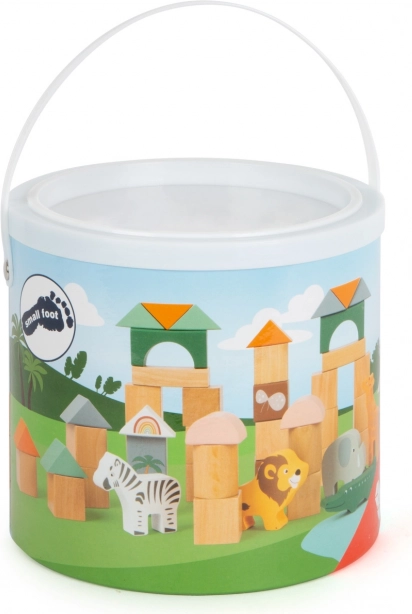 Kreativität und Spaß für Kinder mit den Holzbausteinen Safari! Das Set beinhaltet 50 bunte Steine und 5 Tierfiguren, die Kreativität und motorische Fähigkeiten fördern.