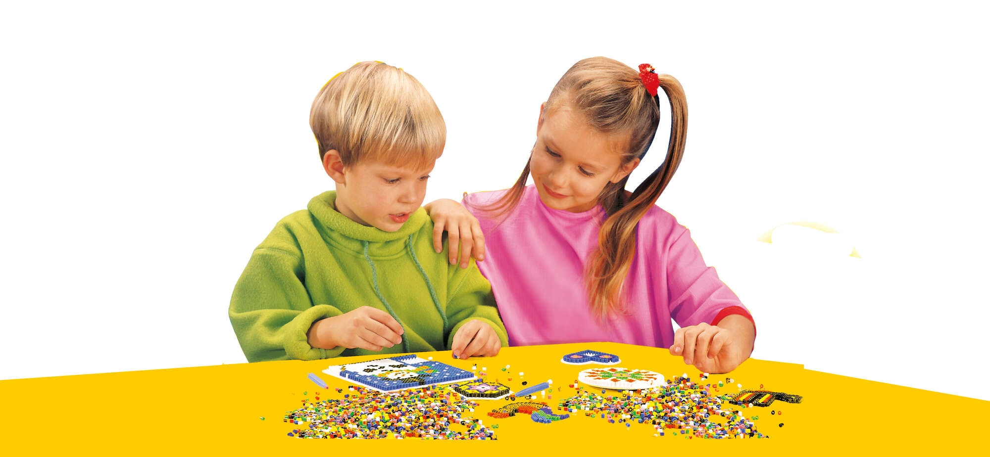 • Komplette Ausstattung: Perlen, Steckplatten, Vorlagen und Bügelpapier.