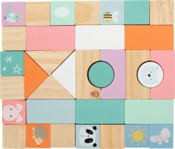 • 34 Holzbausteine in natürlichen und pastelligen Tönen für kreatives Bauen