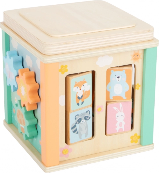 Dieser hölzerne Motorikwürfel in modernen Pastellfarben aus der Produktlinie „Pastel“ überzeugt durch einen hohen Holzanteil, niedliche Tiermotive und sorgfältige Verarbeitung. Kinder können an fünf Seiten spielen und dabei auf natürliche Weise Hand-Auge-Koordination, Geduld und räumliches Vorstellungsvermögen trainieren.