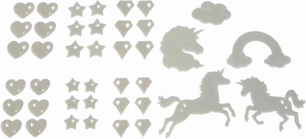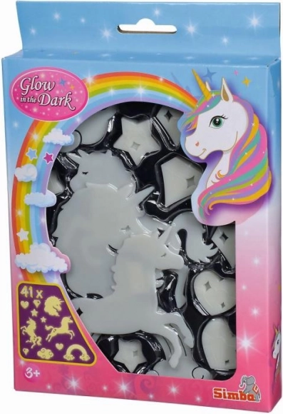 Schaffen Sie im Handumdrehen eine zauberhafte Atmosphäre. Das Set fluoreszierender Dekorationen mit Einhornmotiv leuchtet sanft im Dunkeln, nachdem es mit Licht aufgeladen wurde, und verwandelt jedes Kinderzimmer in ein Märchenreich. Die Elemente befestigen Sie ganz einfach mit dem Klebegummi, der im Lieferumfang enthalten ist.