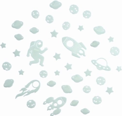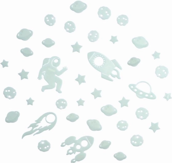 Mit diesem Weltraum-Set zaubern Sie ganz einfach einen magischen Nachthimmel direkt im Kinderzimmer. Kurz dem Licht ausgesetzt, sorgt der phosphoreszierende Effekt für ein sanftes Nachleuchten, das die Fantasie anregt und beim ruhigen Einschlafen hilft.