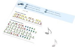 Im Lieferumfang sind Notenblätter mit Farbcodes und beliebten Kinderliedern für einen schnellen Einstieg enthalten.