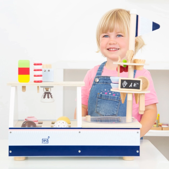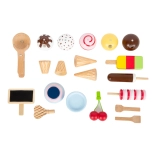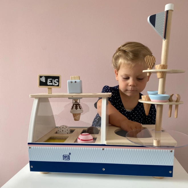 Das Set enthält acht verschiedene Eissorten, darunter Vanille, Schokolade, Stracciatella und Erdbeere. Interaktive Elemente wie Ständer für Waffelhörnchen, eine Kunststoffvitrine und ein Gefrierfach mit transparentem Deckel intensivieren das Spielerlebnis zusätzlich.
