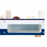 Zum Set gehören außerdem eine Schüssel mit Löffeln, Waffeln und diverses Zubehör. Alles ist in einem dezenten, geschlechtsneutralen Design gestaltet und damit ideal für jedes Kind. Maße des Standes: 45×21×47 cm, Arbeitshöhe: 11 cm.