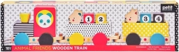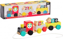 Dieser moderne Holz-Zug besteht aus einer Lokomotive und zwei Waggons, vier Bausteinen mit Ziffern und zwei niedlichen Tierfreunden. Kinder können ihn an der Schnur hinter sich herziehen, die Bausteine und Figuren stapeln und neu anordnen und dabei Fantasie, logisches Denken sowie Fein- und Grobmotorik fördern.