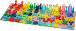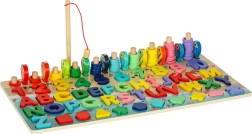 Dieses kreative didaktische Set bietet Kindern viele Möglichkeiten, spielend zu lernen. Mit dem Sortierer trainieren sie das Erkennen von Formen, Zahlen und Buchstaben, mit dem Abakus erlernen sie die Grundlagen des Zählens, und mit der magnetischen Angel erleben sie spaßiges Fischefangen, das die Hand-Auge-Koordination stärkt.