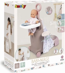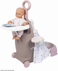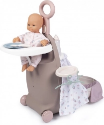 Der multifunktionale Smoby Baby Nurse Koffer bietet Kindern ein einzigartiges Pflegezentrum 3-in-1. Nach dem Aufklappen wird der Koffer zu einem Hochstuhl mit Tischfunktion und Spielzubehör. Der zweite Teil verwandelt sich in ein Puppenbett mit Baldachin und Decke.