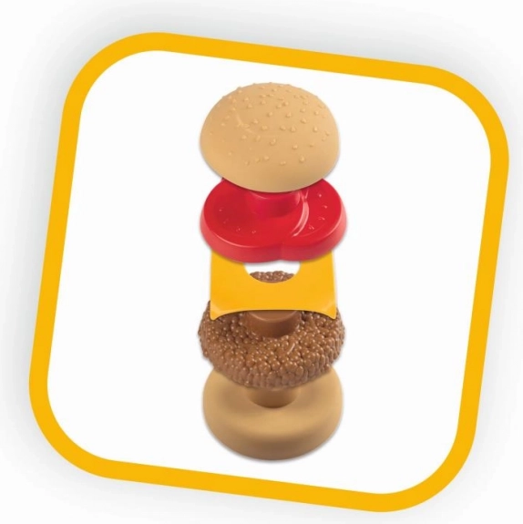 Von Pfanne und Küchenutensilien bis hin zu Burger, Pommes, Soßen und Kreditkarte. Der Pfannkuchen ändert beim Wenden in der Pfanne die Farbe – für noch mehr Spaß.