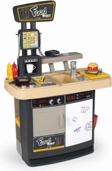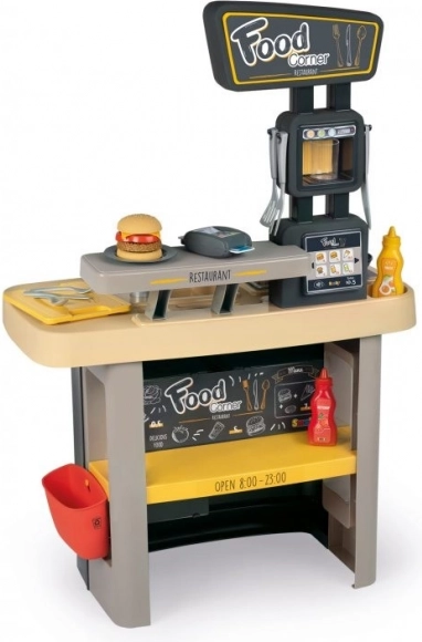 Eröffne deinen eigenen kleinen Fast-Food-Laden! Der Food Corner 2-in-1 von Smoby kombiniert eine Kinderküche mit einer Ausgabetheke samt Kasse. Kinder können Burger, Pommes oder Pfannkuchen zubereiten und gleichzeitig Kunden an der Theke bedienen – genau wie in einem echten Restaurant.