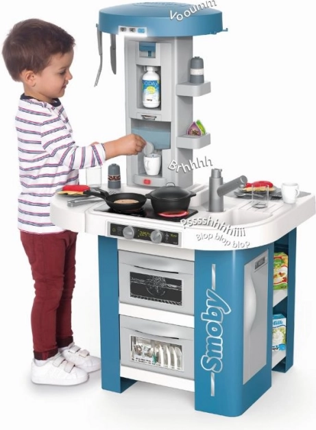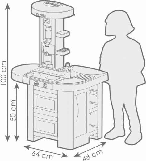 Der weitere Lieferumfang umfasst Ofen, Spülmaschine, Kühlschrank, Spüle mit fließendem Wasser, Sodamaschine und zahlreiche Aufbewahrungsmöglichkeiten. Mit 35 spaßigen Accessoires inklusive Küchenutensilien, die das authentische Kocherlebnis komplettieren.