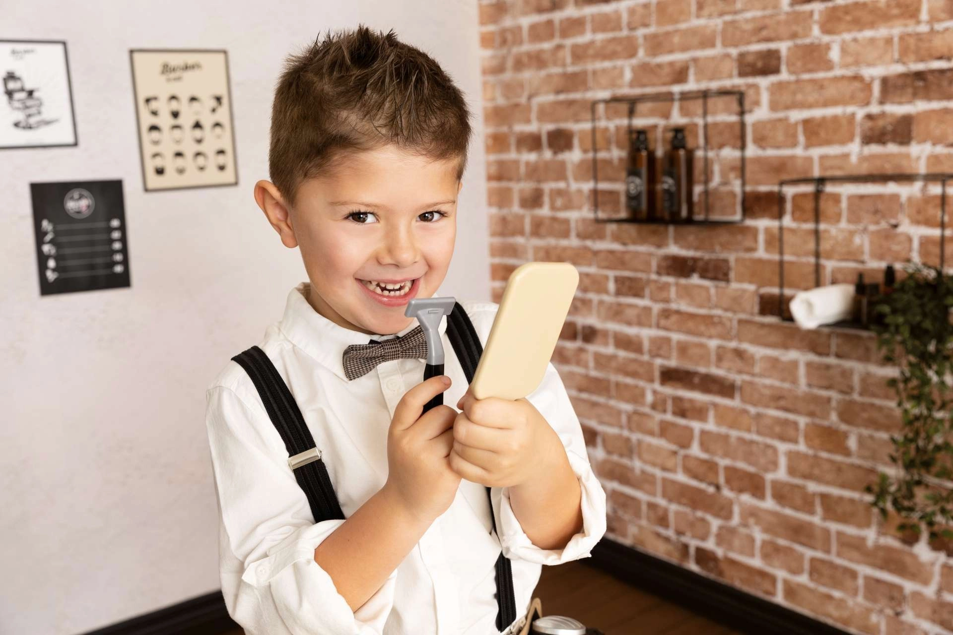 Spiegel, Schere, Kamm, Bürste, Rasierer und weiteres Zubehör sorgen für stundenlangen, sicheren und kreativen Spielspaß für Kinder ab 3 Jahren.