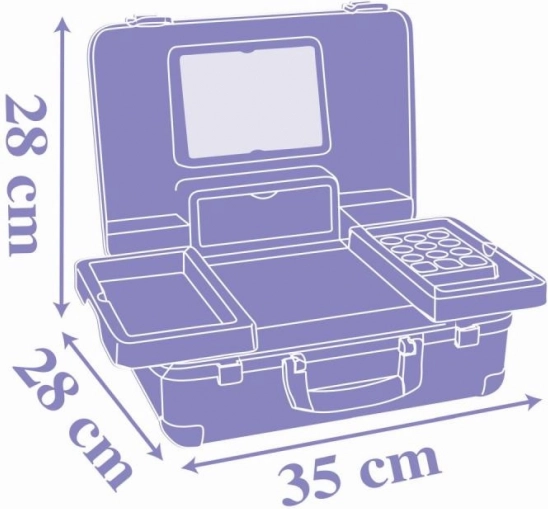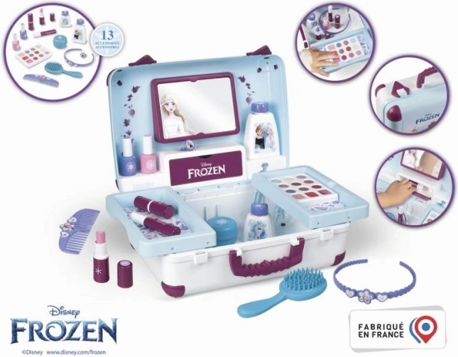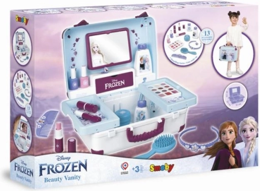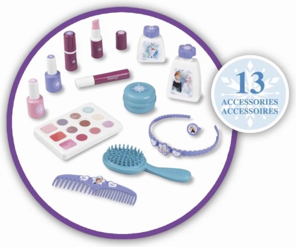 Schönheitssatz Smoby Eiskönigin ist das ideale Zubehör für jedes Kind, das es liebt, Erwachsene in ihrer täglichen Pflege zu entdecken und nachzuahmen. Dieses stilvolle Set kombiniert drei Welten - Friseur, Maniküre und Make-up - und enthält Nachbildungen echter Kosmetikprodukte.