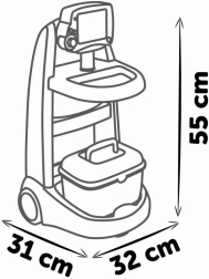 Der elektronische Ärztewagen SMOBY bietet Kindern ein realistisches Arztspiel. Dank des integrierten elektronischen EKG-Moduls mit echten Geräuschen können Kinder Vitalfunktionen messen und den Herzschlag abhören. Der Wagen ist leicht, stabil und einfach zu manövrieren dank der zwei Räder, sodass ihn auch kleinere Kinder mühelos bedienen können. Sämtliches Zubehör lässt sich übersichtlich im mitgelieferten Koffer verstauen.