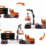 Der Kran kann anstelle des Koffers am Anhänger befestigt werden und bietet die Möglichkeit zum mechanischen Zusammenbau für kreatives Spielen.
