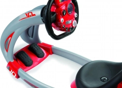 Der Kinder-Renntrainer V8 Driver bringt ein realistisches Fahrerlebnis in die Sicherheit des eigenen Zuhauses. Dank des ergonomischen, verstellbaren Sitzes, sanft laufender mechanischer Pedale und des elektronischen Lenkrads mit Licht- und Soundeffekten genießen Kinder stundenlange, kreative Spielzeiten.