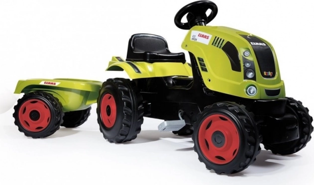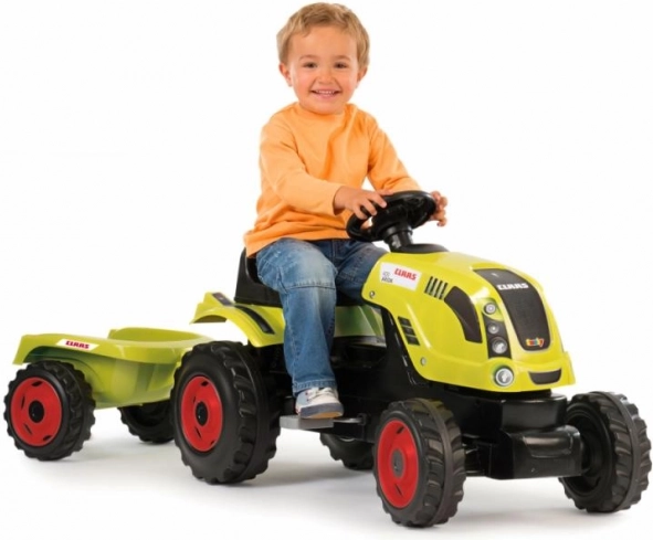 Trettraktor CLAAS mit grünem Anhänger
