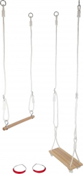 Dank der widerstandsfähigen Synthetikseile mit Seilacht stellen Sie die optimale Höhe für jedes Kind ein. Zwei Seilsätze ermöglichen es, zwei Komponenten gleichzeitig aufzuhängen und zu verwenden. Das einfache Aufhängesystem und die robuste Kombination aus Holz, Metall und hochwertigen Kunststoffen gewährleisten eine sichere und stabile Nutzung.