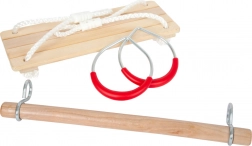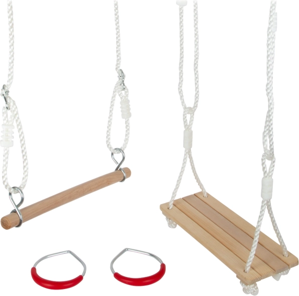 Dieses multifunktionale Set für kleine Akrobaten bringt aktive Bewegung und Freude in den Garten und ins Kinderzimmer. Die klassische Holzschaukel, die Turnstange und die Gymnastikringe mit komfortablen Kunststoffgriffen fördern Koordination, Kraft und Gleichgewicht.