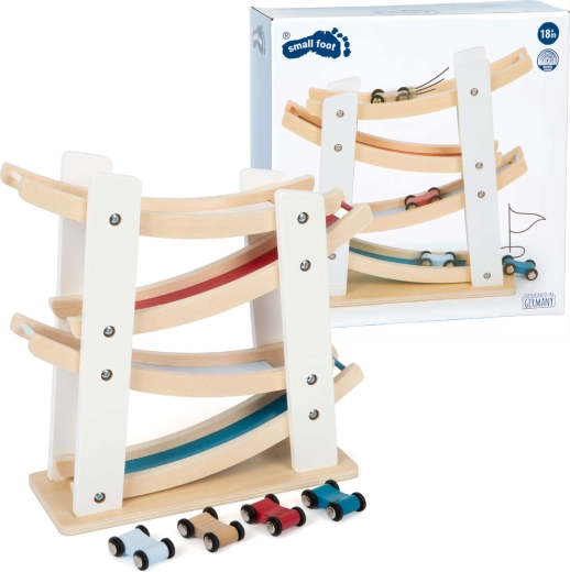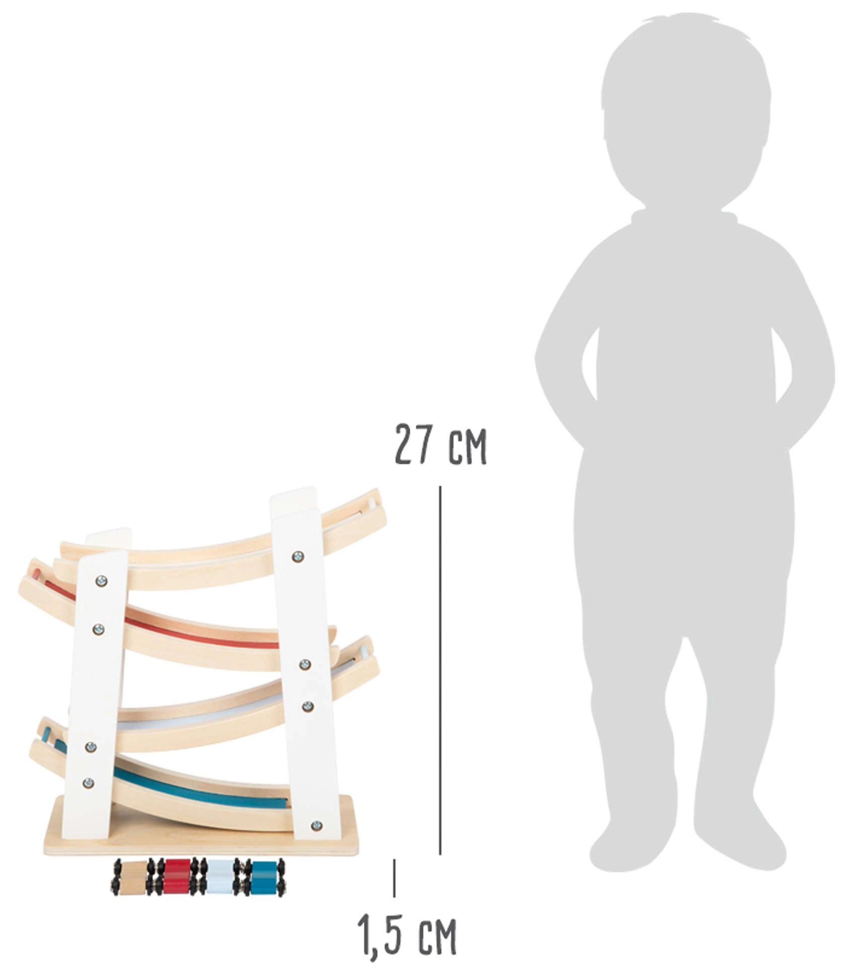Entdecken Sie Spielspaß für die Kleinsten mit der Holz-Rennbahn mit Autos von Small Foot. Die robuste Konstruktion aus naturbelassenem Holz, vier farbige Autos und das flüssige Herunterrollen über kaskadenartige Rampen fördern Feinmotorik, Hand-Auge-Koordination und das Verständnis von Ursache und Wirkung. Ideal als Spielzeug ab 18 Monaten für tägliches kreatives Spielen.