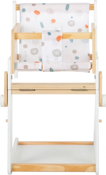 Multifunktioneller Puppenstuhl Little Button bietet eine hervorragende Möglichkeit für Rollenspiele als Elternteil, dank seines einfachen skandinavischen Designs und hochwertigen Materialien. Dieser Stuhl kann leicht in einen kleinen Tisch mit Stuhl umgewandelt werden und ist ideal für Puppen bis zu einer Größe von 46 cm.