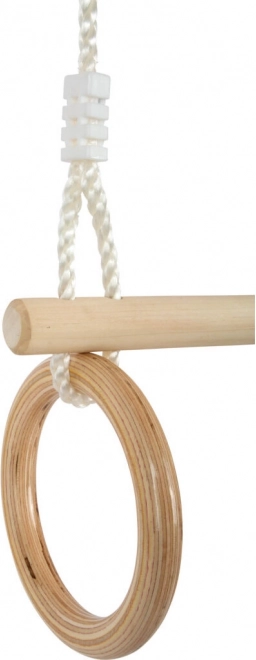 Diese Holzstange mit Turnringen ermöglicht vielseitiges körperliches Training und eignet sich für Kinder ab 3 Jahren. Die robuste Konstruktion und die einstellbare Seillänge sorgen für Sicherheit und Variabilität.