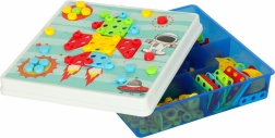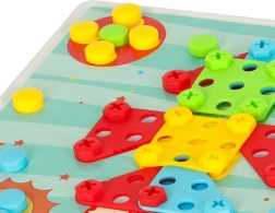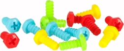 Ein großes Set aus bunten Schrauben, Plättchen und Formteilen weckt die Kreativität und fördert das selbstständige Gestalten von Mosaiken und Modellen.