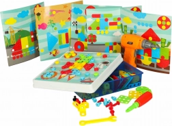 Mit der Mosaikplatte können Kinder mithilfe des Spielzeugbohrers, Schraubendrehers und Schlüssels bunte Schrauben eindrehen und vielfältige Bilder sowie 3D-Modelle erschaffen. Beleben Sie die kindliche Fantasie – die einzige Grenze ist die Vorstellungskraft der kleinen Konstrukteurinnen und Konstrukteure.