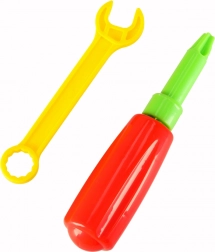 Kinder können dank des sicheren batteriebetriebenen Bohrers, Schraubendrehers und Schlüssels wie echte Heimwerker schrauben – ideal zum Training der Motorik.