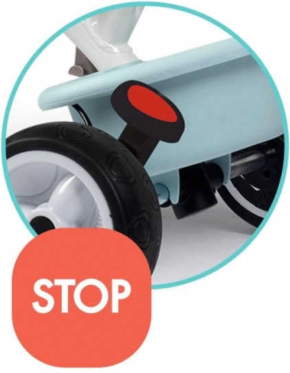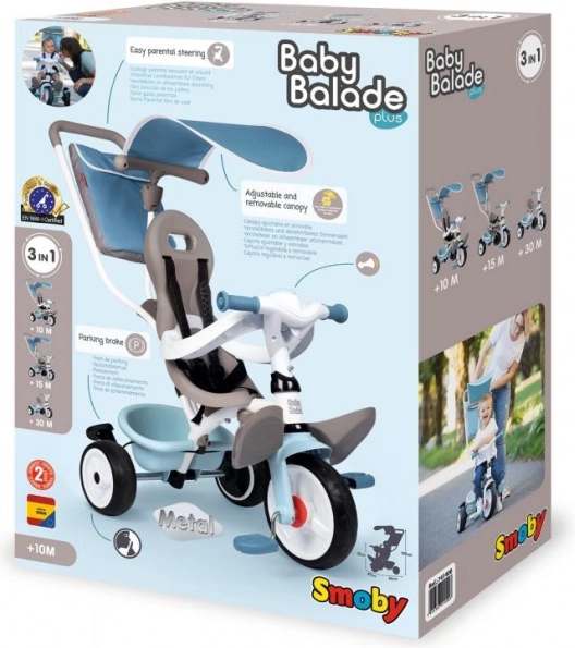 SMOBY Baby Balade Plus ist ein zuverlässiges erstes Dreirad, das Ihr Kind von den ersten Ausfahrten bis zur selbstständigen Fahrt begleitet. Eltern schätzen die höhenverstellbare Schiebestange und die Lenkungssperre für eine einfache Steuerung, ebenso wie die Feststellbremse für sicheres Anhalten. Dank des Freilauf-Mechanismus kann sich das Rad drehen, während die Pedale stillstehen – ideal, wenn ein Erwachsener schiebt.