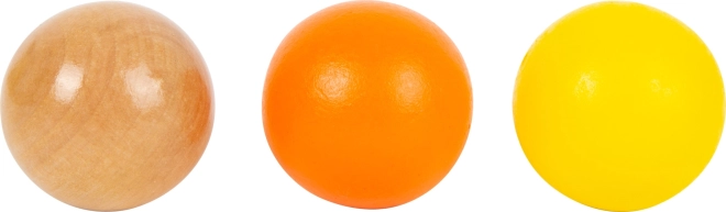 Drei glatte Holzkugeln in attraktiven Farben fördern die Feinmotorik und ein sicheres Greifen ohne Verschluckungsrisiko.