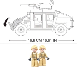Der Baukasten besteht aus hochwertigem, robustem Material und lässt sich dank der Kompatibilität mit LEGO, COBI und MEGA BLOKS problemlos mit weiteren Teilen erweitern. Ideale Wahl für kleine Baumeister ab 6 Jahren, die Militärthemen und Geländefahrzeuge mögen.
