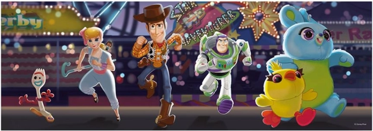Cowboy Woody hat das Herz am rechten Fleck. Er rettet seine Freunde regelmäßig vor Schurken und bewahrt Ihre Kinder vor Langeweile. Dabei hilft ihm ein 150-teiliges Puzzle, auf dem die Haupthelden aus A Toy Story: Alles hört auf kein Kommando (Teil 4) abgebildet sind. Kinder haben nicht nur Spaß beim Puzzeln, sondern trainieren auch Konzentrationsfähigkeit, Fantasie und Geschicklichkeit. Das Panorama-Format des Puzzles lädt geradezu dazu ein, es nach dem Fertigstellen zu hinterkleben und im Kinderzimmer auszustellen. Hauptmerkmale: Das Puzzle wurde in der Tschechischen Republik hergestellt. Die Teile bestehen aus widerstandsfähiger Pappe, die selbst bei unachtsamer Handhabung nicht beschädigt wird, was gründliche Tests belegen. Das Material ist zudem gesundheitlich unbedenklich und erfüllt strenge Sicherheitsnormen. Das Puzzle hilft Kindern, die Motorik zu verbessern, fördert die Fantasie und die Konzentration auf eine Tätigkeit. In jeder Packung ist dank zuverlässiger Lasertechnologie die exakte Teilezahl garantiert.
