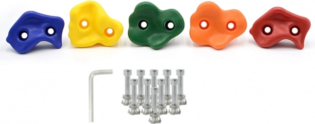 Dieses Set enthält fünf robuste und widerstandsfähige Klettergriffe mit einer Tragfähigkeit von bis zu 100 kg. Ideal zur Montage auf modernen Kinderspielplätzen und Outdoor-Spielbereichen.