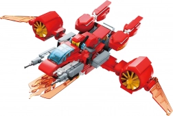 Der futuristische rote Jäger mit detailreichem Cockpit, Triebwerken und „Feuer“-Elementen verleiht jeder Mission Tempo und Spannung.