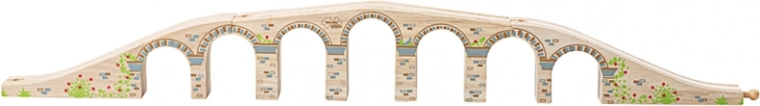 Die BIGJIGS RAIL Brücke verleiht Ihrer Holzeisenbahn beeindruckende Höhe und Länge. Dank der robusten Holzausführung und glatten Verbindungen fahren die Züge flüssig, während unter den Bögen ausreichend Platz auch für hohe Ladungen bleibt. Eine elegante Verzierung, die an Steinmauerwerk erinnert, verleiht dem Set ein realistisches Aussehen.