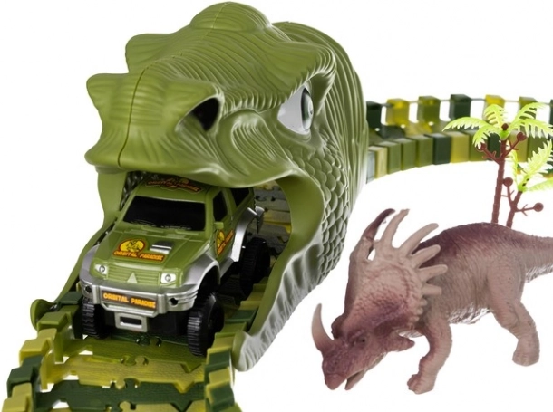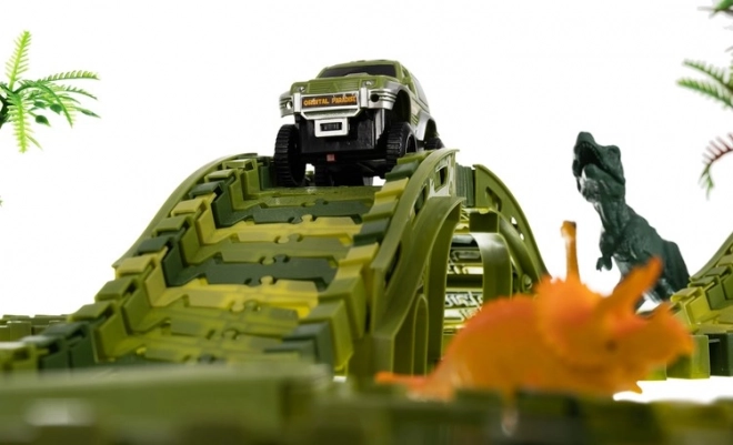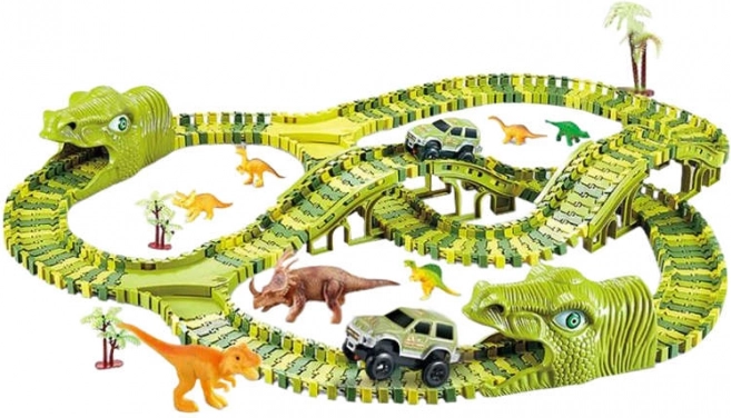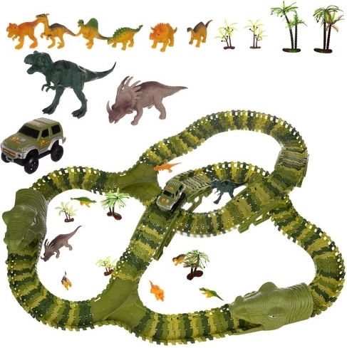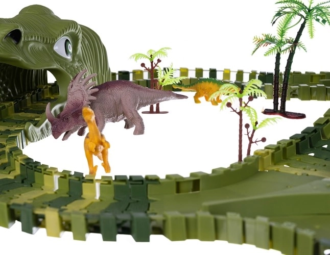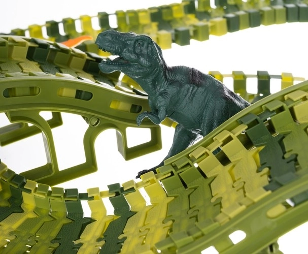 Erleben Sie mit der Rennstrecke im Dino-Park ein spannendes Spiel- und Bauabenteuer mit insgesamt 270 Teilen, darunter 240 flexible Streckenteile und 30 Zubehörteile. Die umfangreiche Ausstattung ermöglicht den Bau einer aufregenden Strecke mit authentisch aussehenden Dinosaurierlandschaften.