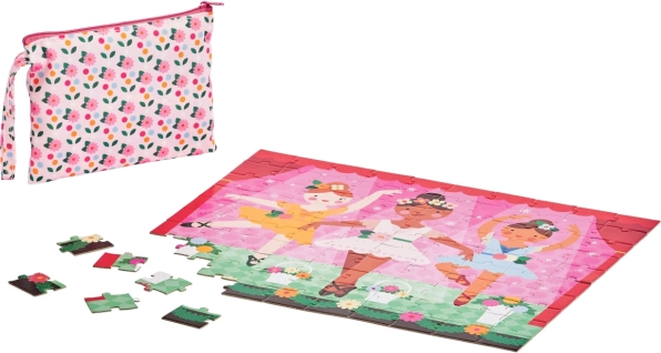 Entdeckt den Zauber des Balletts in spielerischer Form. Das beidseitige 2-in-1-Puzzle mit Ballerina-Motiv bringt doppelten Spaß und unterstützt gleichzeitig die Feinmotorik, die Konzentration sowie das Erkennen von Farben und Formen. Dank kompakter Maße und des Reißverschlussbeutels ist es ein großartiger Begleiter für Ausflüge und Ferien.