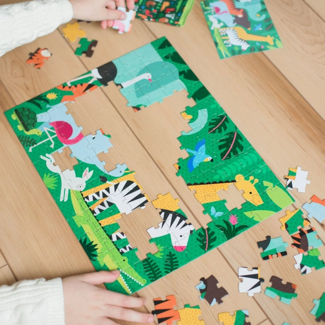 Zwei verschiedene Dschungelbilder in einem Puzzle fesseln Kinder länger und bieten bei jedem Zusammensetzen neue Herausforderungen.