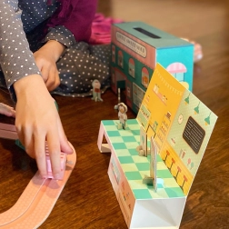 Hergestellt mit Blick auf den Planeten – verwendeter Karton, Papier und Holz tragen die FSC-Zertifizierung, die Verpackung ist komplett plastikfrei. Das Set fördert Feinmotorik, Vorstellungskraft und Rollenspiel bei Kindern ab 3 Jahren.