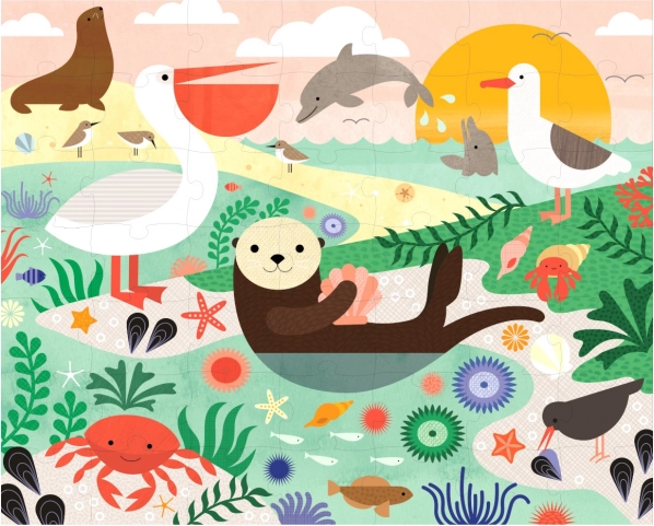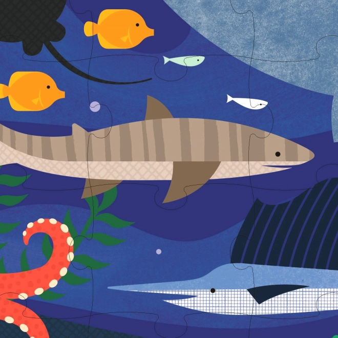 Zweiseitiges Puzzle mit Meeresmotiv, mit zwei einzigartigen Designs auf 49 Teilen, die doppelten Spaß für Kinder bieten.